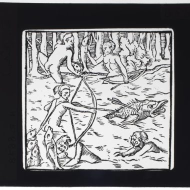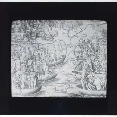 Brasil. Tupinambá travando uma batalha em canoas (segundo de Bry) [gravura]