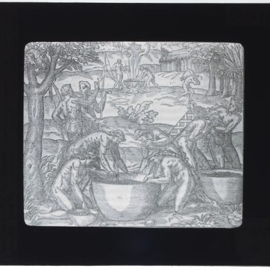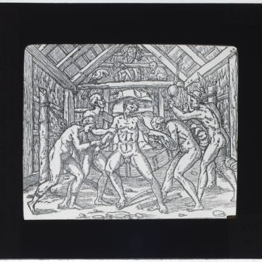 Brasil. Tupinambá. O corpo do prisioneiro é lavado e esfregado antes de ser cortado (após de Bry) [gravura]