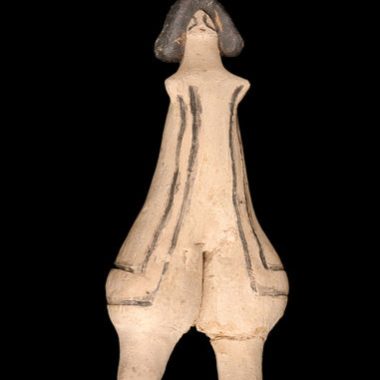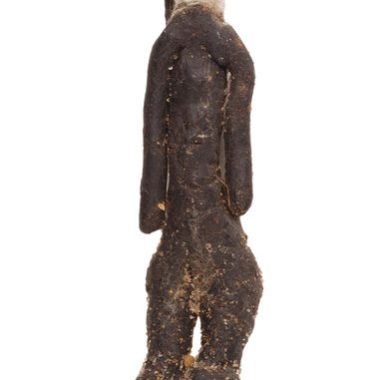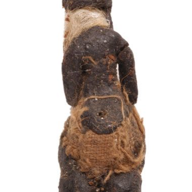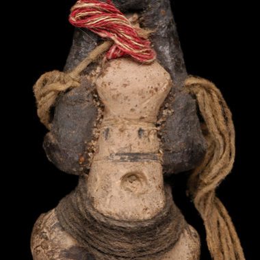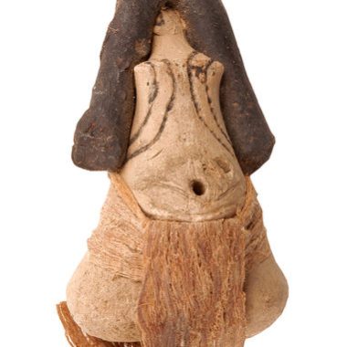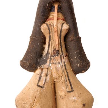 Feita de argila “irisada” e cera “tabora”; representa uma mulher. A cabeça está escondida sob o cabelo que é uma bobina de cera, em forma de U invertido, colocada no topo da cabeça; os dois ramos têm uma protuberância em sua extremidade. O peito também é marcado por uma protuberância. Então o corpo é esbelto, …