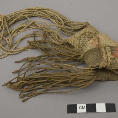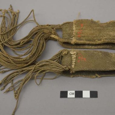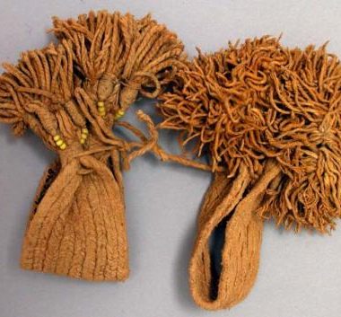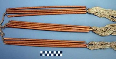3 grupos de tubetes de bambu, enfiadas com fio de algodão, franjadas – cerimonial