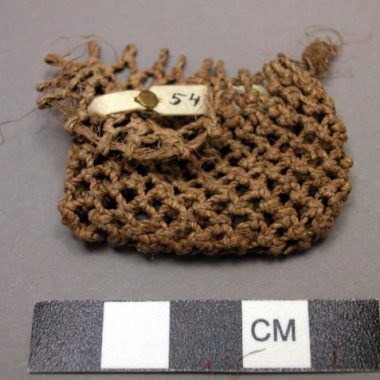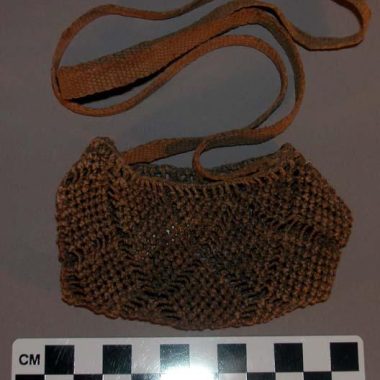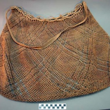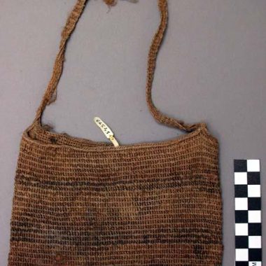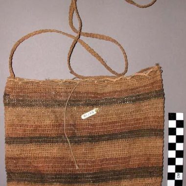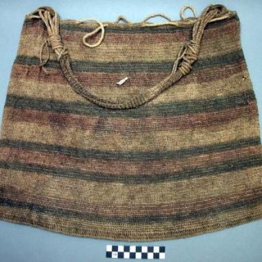 Saco de fibra vegetal com faixa dianteira de tecido.
