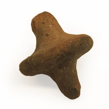 Pente composto de um bastão cilíndrico de madeira marrom polida atravessado por varas de madeira dura polida. O bastão central e os das extremidades são brancos e os outros são vermelhos. A haste cilíndrica tem 14 furos, mas falta quase toda a parte inferior da segunda haste à esquerda e toda a parte superior da …