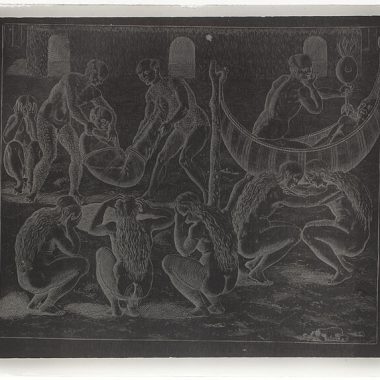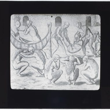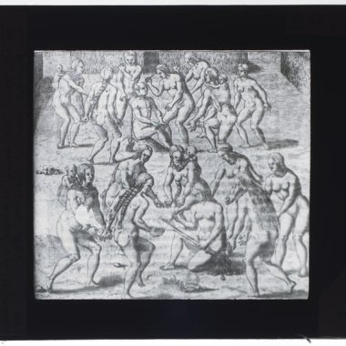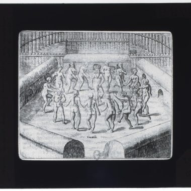Brasil. Mulheres Tupinambá dançando em volta do preso que será executado (após de Bry) [gravura]