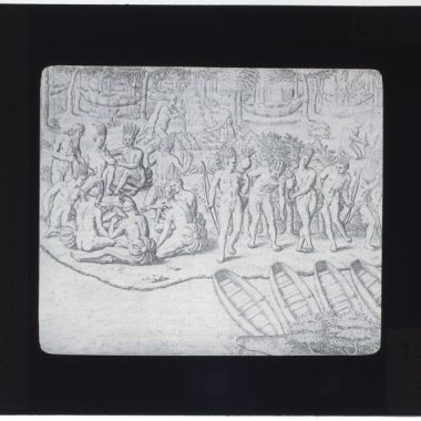Brasil. Tropa Tupinambá vitoriosa trazendo de volta prisioneiros europeus após de Bry [gravura]