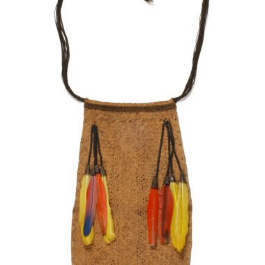 Peça que serve de apoio à criança como alça de ombro com alça de transporte (ver 033365). Segundo Gustaaf Verswijver (17.09.2015): o tapete é feito para o recém-nascido. Quando cresce, o tapete se transforma em uma bolsa na qual colocamos nossos dentes de leite. Então esta bolsa é enterrada na floresta perto de uma árvore …