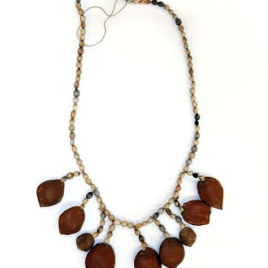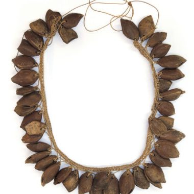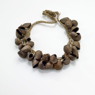 Conjunto de objetos coletados no campo em uma aldeia de Tikuna: máscaras, ornamentos, instrumentos musicais, etc. Pendurado em braçadeiras, usado por mulheres na vida cotidiana e na vida Ritualle (constantemente)