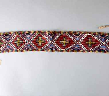 Adorno constituído por uma pequena carapaça de tartaruga furada e dotada de um cordão de suspensão e pequenos pingentes de penas vermelhas. Peça confeccionada e usada durante as férias por homens (e rapazes) que têm o privilégio dela. Às vezes, o uso diário., Usado amarrado ao acessório de colares inv. 40919 a 40921, como um …