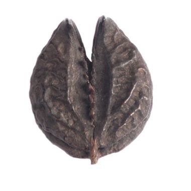 Fruta truncada em forma de cone (-1), oca, com haste e tampa em forma de prego (-2).