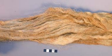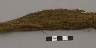 Amostra de resina vegetal em forma de pequena salsicha castanha escura. Molhado, fica vermelho.