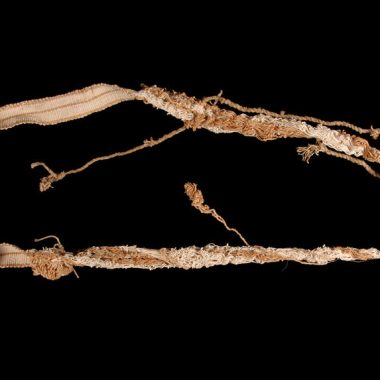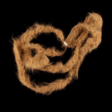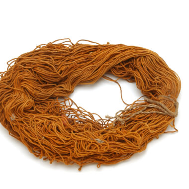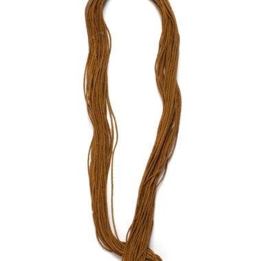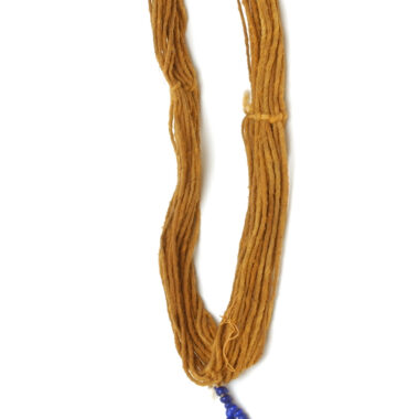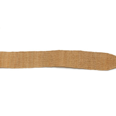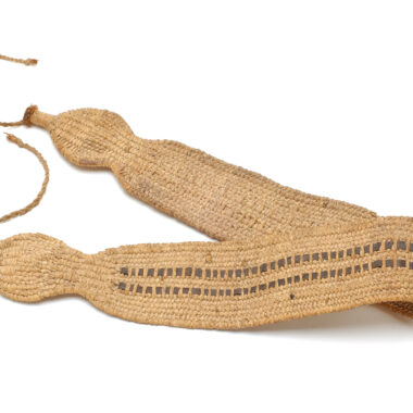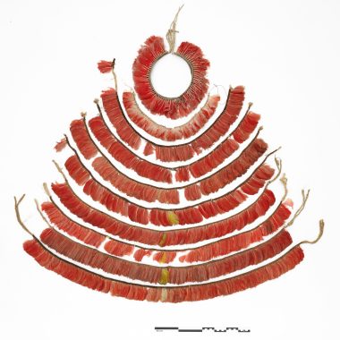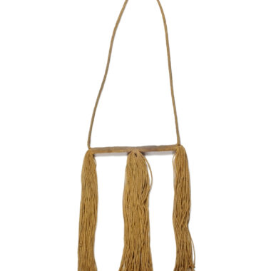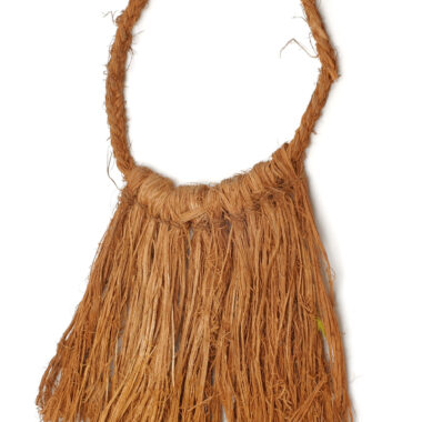 Franja de fibras de casca de árvore mràm “montada sobre cordão do mesmo material. Esta peça é confeccionada e usada por homens e meninos que têm o privilégio dela, durante a festa do” bemp “. A franja fica posicionada na frente”