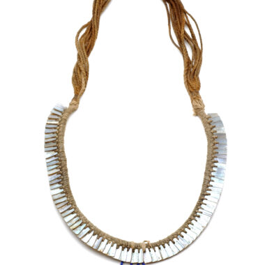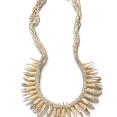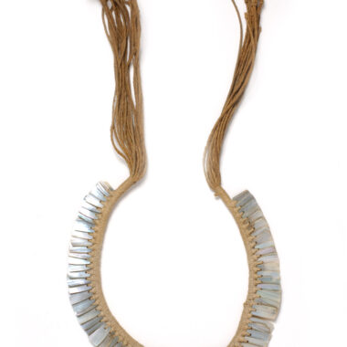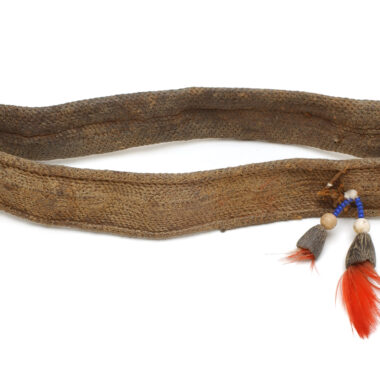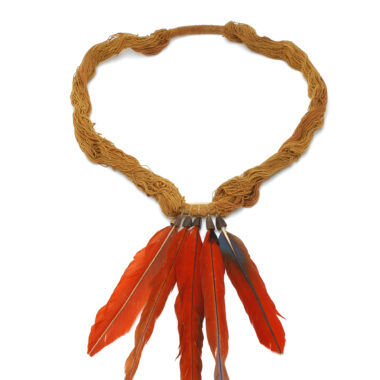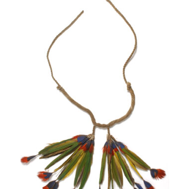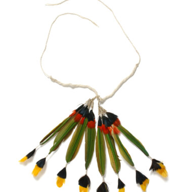 Peça idêntica a 40940 mas com 5 pendentes (pinna grande de arara vermelha mais noz de tucum). Esta peça é feita por mulheres e usada por meninos e meninas na fase final de imposição do nome. Esta peça é normalmente usada como um par de suéter cruzado. A técnica de lockpicking teria sido emprestada dos …