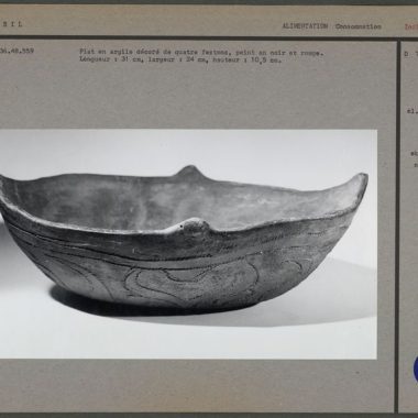 Uma tigela de barro Kadiwéu. A cerâmica é feita pelas mulheres, toda decorada com padrões e cores. O material é extraído de poços de argila especiais, a argila contém uma certa firmeza para fazer cerâmica que pode durar muito tempo.
