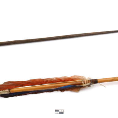 Seta de ponta de madeira com ponta de osso amarrada com fio de algodão. Ver arquivo 40785 (Informações sobre o acervo). Objeto confeccionado e utilizado por homens para caça de pássaros e pequenos jogos. Informações sobre os objetos da coleção amazônica retiradas das publicações do MEG e do SSA (Aurélie Vuille 2015 -2016) Objeto mencionado …