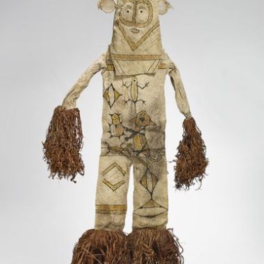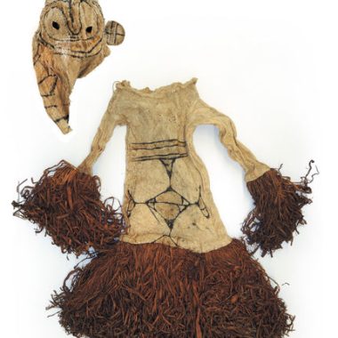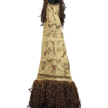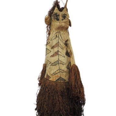 Esta máscara representa um macaco. No ritual da puberdade para meninas, ele é o garantidor da desordem. Ele tem todos os direitos e é responsável por perseguir as meninas. Na face da máscara, encontramos o motivo característico do ara As máscaras rituais são feitas e usadas exclusivamente por homens. As máscaras são feitas fora de …