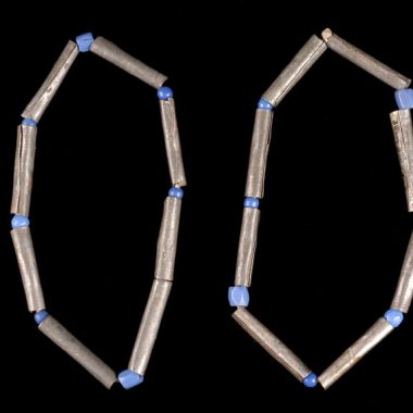Conchas de Dentalium usadas nos tornozelos para proteger contra a picada de cobra.