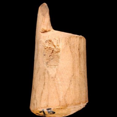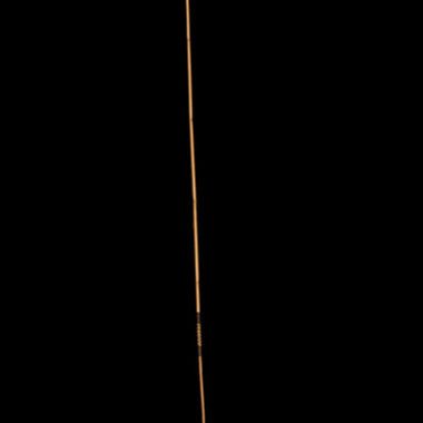 Haste de junco “Taquara”. A extremidade de madeira é amarrada com uma tira de casca e terminada com uma ponta de osso presa com um fio de algodão. A ligadura entre a madeira e a palheta é seguida por uma decoração de palha trançada de cor bege e marrom. Na outra extremidade: um ornamento composto …