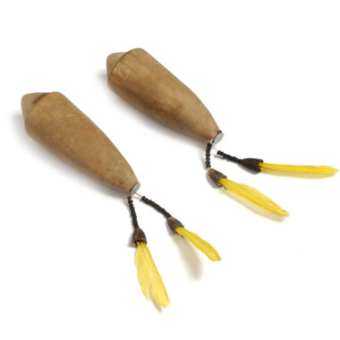 Usado por crianças de ambos os sexos, nos lóbulos das orelhas furadas. Por ocasião das festividades. Informações sobre os objetos do acervo amazônico retiradas das publicações do MEG e do SSA Nota: As citações abaixo são trechos. Para o texto completo, consulte a publicação citada. (Aurélie Vuille 2015-2016) “Feito por homens e usado aos pares …