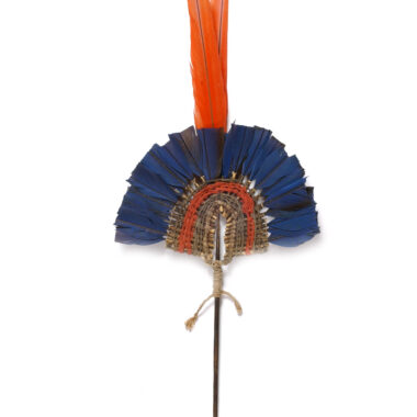 Feito e usado por homens, usado em alguns festivais, montado em um Cocar de cera. Informações sobre itens da coleção amazônica retiradas de publicações MEG e SSA Nota: As citações abaixo são trechos . Para o texto completo, consulte a publicação citada. (Aurélie Vuille 2015-2016) “[Sobre os adornos de penas:] Se os dos Kayapó não …