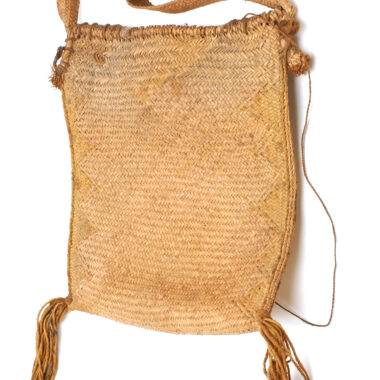 Objeto tecido com fibras de palmeira de Buriti (ngrwa’ô “) e munido de uma tira suspensa do mesmo material. Peça feita por mulheres e usada quase exclusivamente por mulheres como recipiente para sementes secas de urucum ou babaçu. O objeto é suspensos na moldura da casa “” 2 pingentes de algodão (“kadjàt”) dispostos nos ângulos …