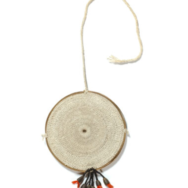 Peça que serve de apoio à criança como alça de ombro com alça de transporte (ver 033365). Segundo Gustaaf Verswijver (17.09.2015): o tapete é feito para o recém-nascido. Quando cresce, o tapete se transforma em uma bolsa na qual colocamos nossos dentes de leite. Então esta bolsa é enterrada na floresta perto de uma árvore …