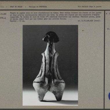 Em argila crua (irude[a]) e cera (tabora[a]) representando uma mulher. A cabeça é marcada por um pequeno cume formando um queixo. Daí, o corpo se alarga, 2 excrescências laterais pontiagudas formam os seios; o corpo se alarga novamente e forma uma excrescência em direção à frente, o ventre, que transborda para a tanga que o …