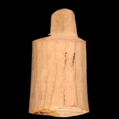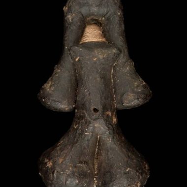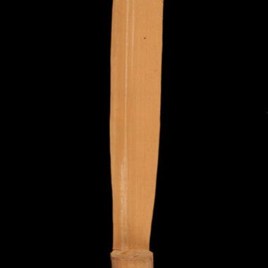 Lança decorada com espartano e pena, ponta feita de osso de puma.