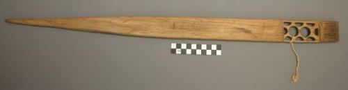 Adorno Bastão de aprendiz com cabo curvo – cerimonial Acessar item no Acervo do museu de origemDocumentação Em “Termos de Uso”, disponíveis em (https://www.peabody.harvard.edu/node/778) explicita-se que o website é mantido pelo Peabody Museum of Archaeology and Ethnology, da Universidade de Harvard, que pode alterá-los a qualquer momento sem aviso prévio. O uso do website deve estar em concordância com: 1. O Site e grande parte do texto, imagens, gráficos, clipes de áudio e vídeo, informações e outros conteúdos do Site (coletivamente, o “Conteúdo”) são protegidos por direitos autorais, marcas registradas e outras leis. 2. O Conteúdo é disponibilizado somente para seu uso pessoal limitado, não comercial para fins educacionais ou acadêmicos, ou para outro uso justo na extensão permitida pela lei de direitos autorais dos Estados Unidos. A menos que especificado de outra forma no Site, você pode empregar as funções normais de seu navegador para baixar e imprimir uma única cópia de arquivos de Conteúdo individuais para tal uso, desde que você mantenha todos os direitos autorais e outros avisos de propriedade associados ao Conteúdo. Você deve citar o autor/artista e a fonte do Conteúdo como se fosse conteúdo de qualquer trabalho impresso, e a citação deve incluir a URL www.peabody.harvard.edu; 3. Concedem a permissão limitada acima sob os direitos autorais que possuem. Os direitos autorais e outros direitos sobre o Conteúdo também podem ser detidos por outros indivíduos ou entidades, incluindo artistas e outros detentores de direitos sobre as coleções do Museu Peabody reproduzidas no Site; 4. Usos Proibidos. É proibido copiar, exibir, publicar, distribuir, transmitir, modificar, executar ou utilizar ou explorar qualquer Conteúdo protegido no Site para qualquer propósito comercial ou com o propósito de torná-lo publicamente disponível. É proibido incluir qualquer Conteúdo protegido em um banco de dados, website ou recurso eletrônico, e de fazer qualquer outro uso do Conteúdo protegido que não seja expressamente permitido pela Seção 2; 5. Para solicitar permissão, sob direitos controlados por nós, para qualquer uso de outra forma proibido, favor entrar em contato com o Peabody Museum of Archaeology and Ethnology’s Office of Rights and ReproductionsPovo Indígena Canela Apanyekrá Localização: America do SulBrasilMaranhão (MA)Museu Peabody Museum (Cambridge, EUA) Localização: América do NorteCambridgeEstados Unidos Número de tombo: 61-7-30/8227 Número anterior: 61-7-30/8227Tipo de Acervo: EtnológicoCaracterísticas Dimensões: 68,4 x 4,4 x 1,4 cm 26 15,16 x 1 3,4 x 9,16 cm Quantidade de componentes: 1 Material/Suporte: Madeira, algodãoTesauro (FUNAI) Artefatos: Bastao CerimonialEquipamento mágico-ritual Matérias Primas: Fibra VegetalMadeiraProduto de origem VegetalProveniência Coleta: América do Sul, BrasilHistórico Cedente: Anônimo Coletor:Anônimo Forma de Aquisição: : Selecione Exportar ObraBastão de aprendiz com cabo curvo – cerimonial