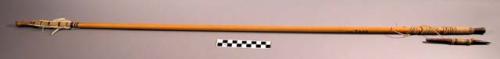 Arpão Flecha para caçar tartaruga Acessar item no Acervo do museu de origemDocumentação Em “Termos de Uso”, disponíveis em (https://www.peabody.harvard.edu/node/778) explicita-se que o website é mantido pelo Peabody Museum of Archaeology and Ethnology, da Universidade de Harvard, que pode alterá-los a qualquer momento sem aviso prévio. O uso do website deve estar em concordância com: 1. O Site e grande parte do texto, imagens, gráficos, clipes de áudio e vídeo, informações e outros conteúdos do Site (coletivamente, o “Conteúdo”) são protegidos por direitos autorais, marcas registradas e outras leis. 2. O Conteúdo é disponibilizado somente para seu uso pessoal limitado, não comercial para fins educacionais ou acadêmicos, ou para outro uso justo na extensão permitida pela lei de direitos autorais dos Estados Unidos. A menos que especificado de outra forma no Site, você pode empregar as funções normais de seu navegador para baixar e imprimir uma única cópia de arquivos de Conteúdo individuais para tal uso, desde que você mantenha todos os direitos autorais e outros avisos de propriedade associados ao Conteúdo. Você deve citar o autor/artista e a fonte do Conteúdo como se fosse conteúdo de qualquer trabalho impresso, e a citação deve incluir a URL www.peabody.harvard.edu; 3. Concedem a permissão limitada acima sob os direitos autorais que possuem. Os direitos autorais e outros direitos sobre o Conteúdo também podem ser detidos por outros indivíduos ou entidades, incluindo artistas e outros detentores de direitos sobre as coleções do Museu Peabody reproduzidas no Site; 4. Usos Proibidos. É proibido copiar, exibir, publicar, distribuir, transmitir, modificar, executar ou utilizar ou explorar qualquer Conteúdo protegido no Site para qualquer propósito comercial ou com o propósito de torná-lo publicamente disponível. É proibido incluir qualquer Conteúdo protegido em um banco de dados, website ou recurso eletrônico, e de fazer qualquer outro uso do Conteúdo protegido que não seja expressamente permitido pela Seção 2; 5. Para solicitar permissão, sob direitos controlados por nós, para qualquer uso de outra forma proibido, favor entrar em contato com o Peabody Museum of Archaeology and Ethnology’s Office of Rights and ReproductionsPovo Indígena Arawak Outros nomes para o povo: ArawakiMuseu Peabody Museum (Cambridge, EUA) Localização: América do NorteCambridgeEstados Unidos Número de tombo: 73-9-30/7403 Número anterior: 73-9-30/7403Tipo de Acervo: EtnológicoCaracterísticas Dimensões: 103,6 x 1,4 x 1,1 cm 40 13,16 x 9,16 x 7,16 cm Quantidade de componentes: 1 Material/Suporte: Caniço, fibra vegetal, madeira, metal, penaTesauro (FUNAI) Artefatos: Arma de arremessoEquipamento para caça, pesca, ataque/defesa Matérias Primas: Fibra VegetalMadeiraMetalPenaProduto de origem AnimalProduto de origem MineralProduto de origem VegetalProveniência Coleta: América do Sul, BrasilHistórico Cedente: Museu Peabody Coletor:Dr Charles Frederick Hartt Forma de Aquisição: : Selecione Exportar ObraFlecha para caçar tartaruga