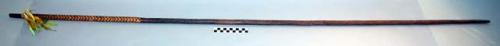 Bastão Bastão Acessar item no Acervo do museu de origemDocumentação Em “Termos de Uso”, disponíveis em (https://www.peabody.harvard.edu/node/778) explicita-se que o website é mantido pelo Peabody Museum of Archaeology and Ethnology, da Universidade de Harvard, que pode alterá-los a qualquer momento sem aviso prévio. O uso do website deve estar em concordância com: 1. O Site e grande parte do texto, imagens, gráficos, clipes de áudio e vídeo, informações e outros conteúdos do Site (coletivamente, o “Conteúdo”) são protegidos por direitos autorais, marcas registradas e outras leis. 2. O Conteúdo é disponibilizado somente para seu uso pessoal limitado, não comercial para fins educacionais ou acadêmicos, ou para outro uso justo na extensão permitida pela lei de direitos autorais dos Estados Unidos. A menos que especificado de outra forma no Site, você pode empregar as funções normais de seu navegador para baixar e imprimir uma única cópia de arquivos de Conteúdo individuais para tal uso, desde que você mantenha todos os direitos autorais e outros avisos de propriedade associados ao Conteúdo. Você deve citar o autor/artista e a fonte do Conteúdo como se fosse conteúdo de qualquer trabalho impresso, e a citação deve incluir a URL www.peabody.harvard.edu; 3. Concedem a permissão limitada acima sob os direitos autorais que possuem. Os direitos autorais e outros direitos sobre o Conteúdo também podem ser detidos por outros indivíduos ou entidades, incluindo artistas e outros detentores de direitos sobre as coleções do Museu Peabody reproduzidas no Site; 4. Usos Proibidos. É proibido copiar, exibir, publicar, distribuir, transmitir, modificar, executar ou utilizar ou explorar qualquer Conteúdo protegido no Site para qualquer propósito comercial ou com o propósito de torná-lo publicamente disponível. É proibido incluir qualquer Conteúdo protegido em um banco de dados, website ou recurso eletrônico, e de fazer qualquer outro uso do Conteúdo protegido que não seja expressamente permitido pela Seção 2; 5. Para solicitar permissão, sob direitos controlados por nós, para qualquer uso de outra forma proibido, favor entrar em contato com o Peabody Museum of Archaeology and Ethnology’s Office of Rights and ReproductionsPovo Indígena Karajá Autodenominação: Iny Iny Karaja Outros nomes para o povo: Carajás Localização: America do SulBrasilGoiás (GO)Mato Grosso (MT)Pará (PA)Tocantins (TO)Museu Peabody Museum (Cambridge, EUA) Localização: América do NorteCambridgeEstados Unidos Número de tombo: 18-12-30/F159 Número anterior: 18-12-30/F159Tipo de Acervo: EtnológicoCaracterísticas Dimensões: 163,5 x 1,8 x 3,4 cm 64 3,8 x 11,16 x 1 5,16 cm Quantidade de componentes: 1 Material/Suporte: Madeira, caniço, pena, lãTesauro (FUNAI) Artefatos: Amostra vegetalAmostra/fragmento/miniatura Matérias Primas: MadeiraPêloPenaProduto de origem AnimalProduto de origem VegetalProveniência Coleta: América do Sul, BrasilHistórico Cedente: Museu de Zoologia Comparada Coletor:Anônimo Forma de Aquisição: : Selecione Exportar ObraBastão