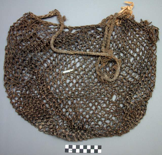 Bolsa Bolsa em rede para transporte feita de fibra de bromélia Acessar item no Acervo do museu de origemDocumentação Em “Termos de Uso”, disponíveis em (https://www.peabody.harvard.edu/node/778) explicita-se que o website é mantido pelo Peabody Museum of Archaeology and Ethnology, da Universidade de Harvard, que pode alterá-los a qualquer momento sem aviso prévio. O uso do website deve estar em concordância com: 1. O Site e grande parte do texto, imagens, gráficos, clipes de áudio e vídeo, informações e outros conteúdos do Site (coletivamente, o “Conteúdo”) são protegidos por direitos autorais, marcas registradas e outras leis. 2. O Conteúdo é disponibilizado somente para seu uso pessoal limitado, não comercial para fins educacionais ou acadêmicos, ou para outro uso justo na extensão permitida pela lei de direitos autorais dos Estados Unidos. A menos que especificado de outra forma no Site, você pode empregar as funções normais de seu navegador para baixar e imprimir uma única cópia de arquivos de Conteúdo individuais para tal uso, desde que você mantenha todos os direitos autorais e outros avisos de propriedade associados ao Conteúdo. Você deve citar o autor/artista e a fonte do Conteúdo como se fosse conteúdo de qualquer trabalho impresso, e a citação deve incluir a URL www.peabody.harvard.edu; 3. Concedem a permissão limitada acima sob os direitos autorais que possuem. Os direitos autorais e outros direitos sobre o Conteúdo também podem ser detidos por outros indivíduos ou entidades, incluindo artistas e outros detentores de direitos sobre as coleções do Museu Peabody reproduzidas no Site; 4. Usos Proibidos. É proibido copiar, exibir, publicar, distribuir, transmitir, modificar, executar ou utilizar ou explorar qualquer Conteúdo protegido no Site para qualquer propósito comercial ou com o propósito de torná-lo publicamente disponível. É proibido incluir qualquer Conteúdo protegido em um banco de dados, website ou recurso eletrônico, e de fazer qualquer outro uso do Conteúdo protegido que não seja expressamente permitido pela Seção 2; 5. Para solicitar permissão, sob direitos controlados por nós, para qualquer uso de outra forma proibido, favor entrar em contato com o Peabody Museum of Archaeology and Ethnology’s Office of Rights and ReproductionsPovo Indígena Kadiwéu Autodenominação: Guakuru Outros nomes para o povo: Guakuru Localização: America do SulBrasilMato Grosso do Sul (MS)Museu Peabody Museum (Cambridge, EUA) Localização: América do NorteCambridgeEstados Unidos Número de tombo: 89-39-30/54335 Número anterior: 89-39-30/54335Características Dimensões: 32,5 x 44,4 x 1,7 cm 12 13,16 x 17 1,2 x 11,16 cm Quantidade de componentes: 1 Material/Suporte: FibraTesauro (FUNAI) Artefatos: Adorno corporalBolsaEquipamento para uso pessoal Matérias Primas: Fibra VegetalProduto de origem VegetalProveniência Coleta: América do Sul, BrasilHistórico Cedente: Anônimo Coletor:Anônimo Forma de Aquisição: : Selecione Exportar ObraBolsa em rede para transporte feita de fibra de bromélia
