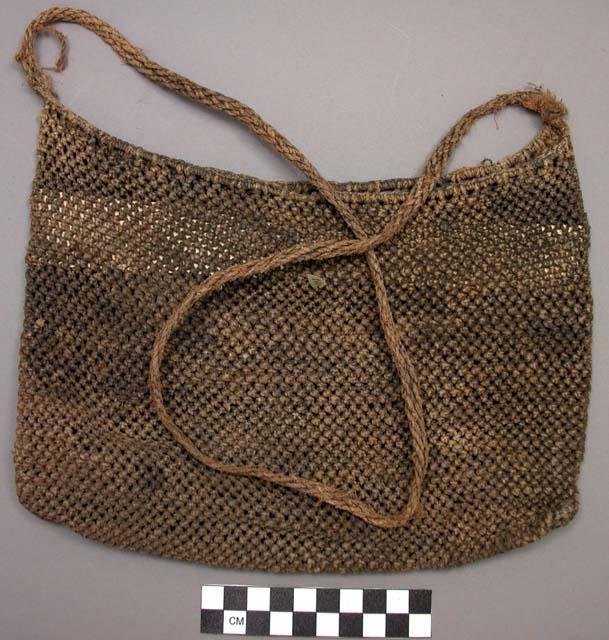 Bolsa Bolsa em rede para transporte feita de fibra de bromélia Acessar item no Acervo do museu de origemDocumentação Em “Termos de Uso”, disponíveis em (https://www.peabody.harvard.edu/node/778) explicita-se que o website é mantido pelo Peabody Museum of Archaeology and Ethnology, da Universidade de Harvard, que pode alterá-los a qualquer momento sem aviso prévio. O uso do website deve estar em concordância com: 1. O Site e grande parte do texto, imagens, gráficos, clipes de áudio e vídeo, informações e outros conteúdos do Site (coletivamente, o “Conteúdo”) são protegidos por direitos autorais, marcas registradas e outras leis. 2. O Conteúdo é disponibilizado somente para seu uso pessoal limitado, não comercial para fins educacionais ou acadêmicos, ou para outro uso justo na extensão permitida pela lei de direitos autorais dos Estados Unidos. A menos que especificado de outra forma no Site, você pode empregar as funções normais de seu navegador para baixar e imprimir uma única cópia de arquivos de Conteúdo individuais para tal uso, desde que você mantenha todos os direitos autorais e outros avisos de propriedade associados ao Conteúdo. Você deve citar o autor/artista e a fonte do Conteúdo como se fosse conteúdo de qualquer trabalho impresso, e a citação deve incluir a URL www.peabody.harvard.edu; 3. Concedem a permissão limitada acima sob os direitos autorais que possuem. Os direitos autorais e outros direitos sobre o Conteúdo também podem ser detidos por outros indivíduos ou entidades, incluindo artistas e outros detentores de direitos sobre as coleções do Museu Peabody reproduzidas no Site; 4. Usos Proibidos. É proibido copiar, exibir, publicar, distribuir, transmitir, modificar, executar ou utilizar ou explorar qualquer Conteúdo protegido no Site para qualquer propósito comercial ou com o propósito de torná-lo publicamente disponível. É proibido incluir qualquer Conteúdo protegido em um banco de dados, website ou recurso eletrônico, e de fazer qualquer outro uso do Conteúdo protegido que não seja expressamente permitido pela Seção 2; 5. Para solicitar permissão, sob direitos controlados por nós, para qualquer uso de outra forma proibido, favor entrar em contato com o Peabody Museum of Archaeology and Ethnology’s Office of Rights and ReproductionsPovo Indígena Kadiwéu Autodenominação: Guakuru Outros nomes para o povo: Guakuru Localização: America do SulBrasilMato Grosso do Sul (MS)Museu Peabody Museum (Cambridge, EUA) Localização: América do NorteCambridgeEstados Unidos Número de tombo: 89-39-30/54343 Número anterior: 89-39-30/54343Características Dimensões: 21,3 x 24,5 x 1 cm 8 3,8 x 9 5,8 x 3,8 cm Quantidade de componentes: 1 Material/Suporte: FibraTesauro (FUNAI) Artefatos: Adorno corporalBolsaEquipamento para uso pessoal Matérias Primas: Fibra VegetalProduto de origem VegetalProveniência Coleta: América do Sul, BrasilHistórico Cedente: Anônimo Coletor:Anônimo Forma de Aquisição: : Selecione Exportar ObraBolsa em rede para transporte feita de fibra de bromélia