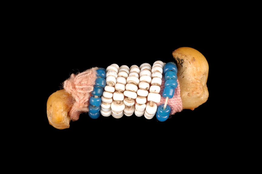Material/Suporte: Ossos de tartaruga adornado com contas
