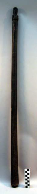 Borduna Bastão Acessar item no Acervo do museu de origemDocumentação Em “Termos de Uso”, disponíveis em (https://www.peabody.harvard.edu/node/778) explicita-se que o website é mantido pelo Peabody Museum of Archaeology and Ethnology, da Universidade de Harvard, que pode alterá-los a qualquer momento sem aviso prévio. O uso do website deve estar em concordância com: 1. O Site e grande parte do texto, imagens, gráficos, clipes de áudio e vídeo, informações e outros conteúdos do Site (coletivamente, o “Conteúdo”) são protegidos por direitos autorais, marcas registradas e outras leis. 2. O Conteúdo é disponibilizado somente para seu uso pessoal limitado, não comercial para fins educacionais ou acadêmicos, ou para outro uso justo na extensão permitida pela lei de direitos autorais dos Estados Unidos. A menos que especificado de outra forma no Site, você pode empregar as funções normais de seu navegador para baixar e imprimir uma única cópia de arquivos de Conteúdo individuais para tal uso, desde que você mantenha todos os direitos autorais e outros avisos de propriedade associados ao Conteúdo. Você deve citar o autor/artista e a fonte do Conteúdo como se fosse conteúdo de qualquer trabalho impresso, e a citação deve incluir a URL www.peabody.harvard.edu; 3. Concedem a permissão limitada acima sob os direitos autorais que possuem. Os direitos autorais e outros direitos sobre o Conteúdo também podem ser detidos por outros indivíduos ou entidades, incluindo artistas e outros detentores de direitos sobre as coleções do Museu Peabody reproduzidas no Site; 4. Usos Proibidos. É proibido copiar, exibir, publicar, distribuir, transmitir, modificar, executar ou utilizar ou explorar qualquer Conteúdo protegido no Site para qualquer propósito comercial ou com o propósito de torná-lo publicamente disponível. É proibido incluir qualquer Conteúdo protegido em um banco de dados, website ou recurso eletrônico, e de fazer qualquer outro uso do Conteúdo protegido que não seja expressamente permitido pela Seção 2; 5. Para solicitar permissão, sob direitos controlados por nós, para qualquer uso de outra forma proibido, favor entrar em contato com o Peabody Museum of Archaeology and Ethnology’s Office of Rights and ReproductionsPovo Indígena Karajá Autodenominação: Iny Iny Karaja Outros nomes para o povo: Carajás Localização: America do SulBrasilGoiás (GO)Mato Grosso (MT)Pará (PA)Tocantins (TO)Museu Peabody Museum (Cambridge, EUA) Localização: América do NorteCambridgeEstados Unidos Número de tombo: 18-12-30/F127 Número anterior: 18-12-30/F127Tipo de Acervo: EtnológicoCaracterísticas Dimensões: 93,4 x 4,2 cm 36 3,4 x 1 5,8 cm Quantidade de componentes: 1 Material/Suporte: MadeiraTesauro (FUNAI) Artefatos: Arma de ChoqueBordunaEquipamento para caça, pesca, ataque/defesa Matérias Primas: MadeiraProduto de origem VegetalProveniência Coleta: América do Sul, BrasilHistórico Cedente: Anônimo Coletor:Anônimo Forma de Aquisição: : Selecione Exportar ObraBastão