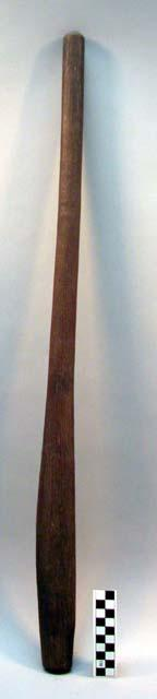 Borduna Bastão Acessar item no Acervo do museu de origemDocumentação Em “Termos de Uso”, disponíveis em (https://www.peabody.harvard.edu/node/778) explicita-se que o website é mantido pelo Peabody Museum of Archaeology and Ethnology, da Universidade de Harvard, que pode alterá-los a qualquer momento sem aviso prévio. O uso do website deve estar em concordância com: 1. O Site e grande parte do texto, imagens, gráficos, clipes de áudio e vídeo, informações e outros conteúdos do Site (coletivamente, o “Conteúdo”) são protegidos por direitos autorais, marcas registradas e outras leis. 2. O Conteúdo é disponibilizado somente para seu uso pessoal limitado, não comercial para fins educacionais ou acadêmicos, ou para outro uso justo na extensão permitida pela lei de direitos autorais dos Estados Unidos. A menos que especificado de outra forma no Site, você pode empregar as funções normais de seu navegador para baixar e imprimir uma única cópia de arquivos de Conteúdo individuais para tal uso, desde que você mantenha todos os direitos autorais e outros avisos de propriedade associados ao Conteúdo. Você deve citar o autor/artista e a fonte do Conteúdo como se fosse conteúdo de qualquer trabalho impresso, e a citação deve incluir a URL www.peabody.harvard.edu; 3. Concedem a permissão limitada acima sob os direitos autorais que possuem. Os direitos autorais e outros direitos sobre o Conteúdo também podem ser detidos por outros indivíduos ou entidades, incluindo artistas e outros detentores de direitos sobre as coleções do Museu Peabody reproduzidas no Site; 4. Usos Proibidos. É proibido copiar, exibir, publicar, distribuir, transmitir, modificar, executar ou utilizar ou explorar qualquer Conteúdo protegido no Site para qualquer propósito comercial ou com o propósito de torná-lo publicamente disponível. É proibido incluir qualquer Conteúdo protegido em um banco de dados, website ou recurso eletrônico, e de fazer qualquer outro uso do Conteúdo protegido que não seja expressamente permitido pela Seção 2; 5. Para solicitar permissão, sob direitos controlados por nós, para qualquer uso de outra forma proibido, favor entrar em contato com o Peabody Museum of Archaeology and Ethnology’s Office of Rights and ReproductionsPovo Indígena Karajá Autodenominação: Iny Iny Karaja Outros nomes para o povo: Carajás Localização: America do SulBrasilGoiás (GO)Mato Grosso (MT)Pará (PA)Tocantins (TO)Museu Peabody Museum (Cambridge, EUA) Localização: América do NorteCambridgeEstados Unidos Número de tombo: 18-12-30/F128.3 Número anterior: 18-12-30/F128.3Tipo de Acervo: EtnológicoCaracterísticas Dimensões: 74,5 x 4,8 x 2,8 cm 29 5,16 x 1 7,8 x 1 1,8 cm Quantidade de componentes: 1 Material/Suporte: MadeiraTesauro (FUNAI) Artefatos: Arma de ChoqueBordunaEquipamento para caça, pesca, ataque/defesa Matérias Primas: MadeiraProduto de origem VegetalProveniência Coleta: América do Sul, BrasilHistórico Cedente: Anônimo Coletor:Anônimo Forma de Aquisição: : Selecione Exportar ObraBastão