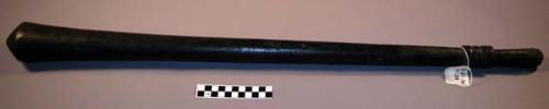 Borduna Bastão Acessar item no Acervo do museu de origemDocumentação Em “Termos de Uso”, disponíveis em (https://www.peabody.harvard.edu/node/778) explicita-se que o website é mantido pelo Peabody Museum of Archaeology and Ethnology, da Universidade de Harvard, que pode alterá-los a qualquer momento sem aviso prévio. O uso do website deve estar em concordância com: 1. O Site e grande parte do texto, imagens, gráficos, clipes de áudio e vídeo, informações e outros conteúdos do Site (coletivamente, o “Conteúdo”) são protegidos por direitos autorais, marcas registradas e outras leis. 2. O Conteúdo é disponibilizado somente para seu uso pessoal limitado, não comercial para fins educacionais ou acadêmicos, ou para outro uso justo na extensão permitida pela lei de direitos autorais dos Estados Unidos. A menos que especificado de outra forma no Site, você pode empregar as funções normais de seu navegador para baixar e imprimir uma única cópia de arquivos de Conteúdo individuais para tal uso, desde que você mantenha todos os direitos autorais e outros avisos de propriedade associados ao Conteúdo. Você deve citar o autor/artista e a fonte do Conteúdo como se fosse conteúdo de qualquer trabalho impresso, e a citação deve incluir a URL www.peabody.harvard.edu; 3. Concedem a permissão limitada acima sob os direitos autorais que possuem. Os direitos autorais e outros direitos sobre o Conteúdo também podem ser detidos por outros indivíduos ou entidades, incluindo artistas e outros detentores de direitos sobre as coleções do Museu Peabody reproduzidas no Site; 4. Usos Proibidos. É proibido copiar, exibir, publicar, distribuir, transmitir, modificar, executar ou utilizar ou explorar qualquer Conteúdo protegido no Site para qualquer propósito comercial ou com o propósito de torná-lo publicamente disponível. É proibido incluir qualquer Conteúdo protegido em um banco de dados, website ou recurso eletrônico, e de fazer qualquer outro uso do Conteúdo protegido que não seja expressamente permitido pela Seção 2; 5. Para solicitar permissão, sob direitos controlados por nós, para qualquer uso de outra forma proibido, favor entrar em contato com o Peabody Museum of Archaeology and Ethnology’s Office of Rights and ReproductionsPovo Indígena Kayapó Autodenominação: Mebengôkre Outros nomes para o povo: Txukarramãe Kayapó-Irã'ãmranh-re Localização: America do SulBrasilMato Grosso (MT)Pará (PA)Museu Peabody Museum (Cambridge, EUA) Localização: América do NorteCambridgeEstados Unidos Número de tombo: 18-12-30/F218 Número anterior: 18-12-30/F218Tipo de Acervo: EtnológicoCaracterísticas Dimensões: 85 x 6,2 x 5,9 cm 33 7,16 x 2 7,16 x 2 5,16 cm Quantidade de componentes: 1 Material/Suporte: Madeira, pigmentoTesauro (FUNAI) Artefatos: Arma de ChoqueBordunaEquipamento para caça, pesca, ataque/defesa Matérias Primas: MadeiraProduto de origem VegetalProveniência Coleta: América do Sul, BrasilHistórico Cedente: Anônimo Coletor:Anônimo Forma de Aquisição: : Selecione Exportar ObraBastão