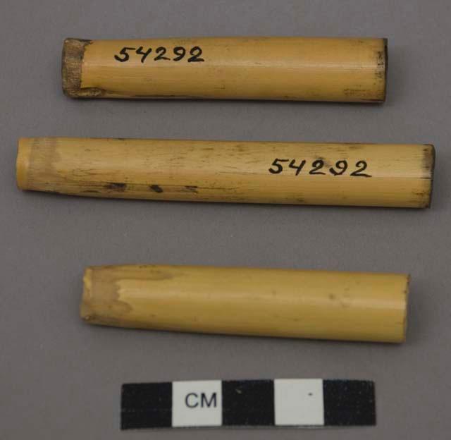 Carimbo corporal Carimbos de cana para estampar corpo e rosto em pinturas corporais Acessar item no Acervo do museu de origemDocumentação Em “Termos de Uso”, disponíveis em (https://www.peabody.harvard.edu/node/778) explicita-se que o website é mantido pelo Peabody Museum of Archaeology and Ethnology, da Universidade de Harvard, que pode alterá-los a qualquer momento sem aviso prévio. O uso do website deve estar em concordância com: 1. O Site e grande parte do texto, imagens, gráficos, clipes de áudio e vídeo, informações e outros conteúdos do Site (coletivamente, o “Conteúdo”) são protegidos por direitos autorais, marcas registradas e outras leis. 2. O Conteúdo é disponibilizado somente para seu uso pessoal limitado, não comercial para fins educacionais ou acadêmicos, ou para outro uso justo na extensão permitida pela lei de direitos autorais dos Estados Unidos. A menos que especificado de outra forma no Site, você pode empregar as funções normais de seu navegador para baixar e imprimir uma única cópia de arquivos de Conteúdo individuais para tal uso, desde que você mantenha todos os direitos autorais e outros avisos de propriedade associados ao Conteúdo. Você deve citar o autor/artista e a fonte do Conteúdo como se fosse conteúdo de qualquer trabalho impresso, e a citação deve incluir a URL www.peabody.harvard.edu; 3. Concedem a permissão limitada acima sob os direitos autorais que possuem. Os direitos autorais e outros direitos sobre o Conteúdo também podem ser detidos por outros indivíduos ou entidades, incluindo artistas e outros detentores de direitos sobre as coleções do Museu Peabody reproduzidas no Site; 4. Usos Proibidos. É proibido copiar, exibir, publicar, distribuir, transmitir, modificar, executar ou utilizar ou explorar qualquer Conteúdo protegido no Site para qualquer propósito comercial ou com o propósito de torná-lo publicamente disponível. É proibido incluir qualquer Conteúdo protegido em um banco de dados, website ou recurso eletrônico, e de fazer qualquer outro uso do Conteúdo protegido que não seja expressamente permitido pela Seção 2; 5. Para solicitar permissão, sob direitos controlados por nós, para qualquer uso de outra forma proibido, favor entrar em contato com o Peabody Museum of Archaeology and Ethnology’s Office of Rights and ReproductionsPovo Indígena Kadiwéu Autodenominação: Guakuru Outros nomes para o povo: Guakuru Localização: America do SulBrasilMato Grosso do Sul (MS)Museu Peabody Museum (Cambridge, EUA) Localização: América do NorteCambridgeEstados Unidos Número de tombo: 89-39-30/54292 Número anterior: 89-39-30/54292Características Dimensões: 8,6 x 1,3 x 1,3 cm 3 3,8 x 1,2 x 1,2 cm Quantidade de componentes: 3 Material/Suporte: CanaTesauro (FUNAI) Artefatos: Adorno corporalAdorno facialCarimboEquipamento para uso pessoal Matérias Primas: MadeiraProduto de origem Vegetal Técnicas Artesanais: Técnica de PinturaProveniência Coleta: América do Sul, BrasilHistórico Cedente: Anônimo Coletor:Anônimo Forma de Aquisição: : Selecione Exportar ObraCarimbos de cana para estampar corpo e rosto em pinturas corporais