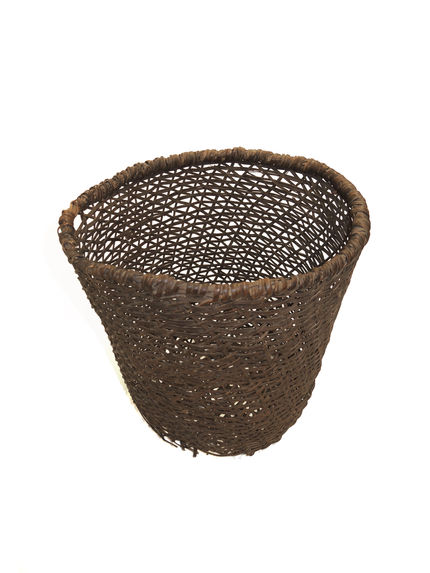 Função: Para transportar mandioca ou aves, por exemplo. Usados na casa (maloca) são suspensos, para todos os fins. Esta peça está muito desgastada e teria sido usada para transportar mandioca
