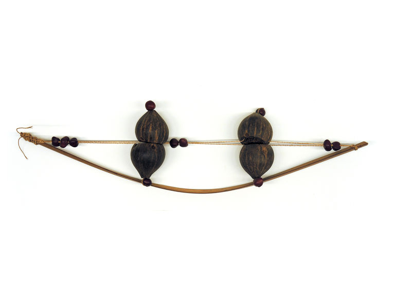 Material/Suporte: fibra vegetal, noz, semente, bambu