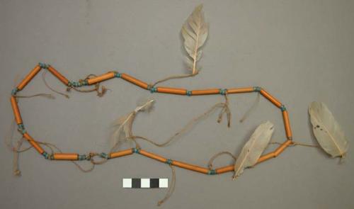 Colar Colar de contas de vidro azul e junco com enfeites de penas em fio de fibra Acessar item no Acervo do museu de origemDocumentação Em “Termos de Uso”, disponíveis em (https://www.peabody.harvard.edu/node/778) explicita-se que o website é mantido pelo Peabody Museum of Archaeology and Ethnology, da Universidade de Harvard, que pode alterá-los a qualquer momento sem aviso prévio. O uso do website deve estar em concordância com: 1. O Site e grande parte do texto, imagens, gráficos, clipes de áudio e vídeo, informações e outros conteúdos do Site (coletivamente, o “Conteúdo”) são protegidos por direitos autorais, marcas registradas e outras leis. 2. O Conteúdo é disponibilizado somente para seu uso pessoal limitado, não comercial para fins educacionais ou acadêmicos, ou para outro uso justo na extensão permitida pela lei de direitos autorais dos Estados Unidos. A menos que especificado de outra forma no Site, você pode empregar as funções normais de seu navegador para baixar e imprimir uma única cópia de arquivos de Conteúdo individuais para tal uso, desde que você mantenha todos os direitos autorais e outros avisos de propriedade associados ao Conteúdo. Você deve citar o autor/artista e a fonte do Conteúdo como se fosse conteúdo de qualquer trabalho impresso, e a citação deve incluir a URL www.peabody.harvard.edu; 3. Concedem a permissão limitada acima sob os direitos autorais que possuem. Os direitos autorais e outros direitos sobre o Conteúdo também podem ser detidos por outros indivíduos ou entidades, incluindo artistas e outros detentores de direitos sobre as coleções do Museu Peabody reproduzidas no Site; 4. Usos Proibidos. É proibido copiar, exibir, publicar, distribuir, transmitir, modificar, executar ou utilizar ou explorar qualquer Conteúdo protegido no Site para qualquer propósito comercial ou com o propósito de torná-lo publicamente disponível. É proibido incluir qualquer Conteúdo protegido em um banco de dados, website ou recurso eletrônico, e de fazer qualquer outro uso do Conteúdo protegido que não seja expressamente permitido pela Seção 2; 5. Para solicitar permissão, sob direitos controlados por nós, para qualquer uso de outra forma proibido, favor entrar em contato com o Peabody Museum of Archaeology and Ethnology’s Office of Rights and ReproductionsPovo Indígena Karajá Autodenominação: Iny Iny Karaja Outros nomes para o povo: Carajás Localização: America do SulBrasilGoiás (GO)Mato Grosso (MT)Pará (PA)Tocantins (TO)Museu Peabody Museum (Cambridge, EUA) Localização: América do NorteCambridgeEstados Unidos Número de tombo: 18-12-30/F186 Número anterior: 18-12-30/F186Tipo de Acervo: EtnológicoCaracterísticas Dimensões: 42,1 x 6,7 x 0,5 cm 16 9,16 x 2 5,8 x 3,16 cm Quantidade de componentes: 1 Material/Suporte: Caniço, vidro, fibra, penaTesauro (FUNAI) Artefatos: Adorno corporalAdorno para TroncoColar Matérias Primas: Fibra VegetalPenaProduto de origem AnimalProduto de origem VegetalProduto industrializadoProveniência Coleta: América do Sul, BrasilHistórico Cedente: Anônimo Coletor:Anônimo Forma de Aquisição: : Selecione Exportar ObraColar de contas de vidro azul e junco com enfeites de penas em fio de fibra