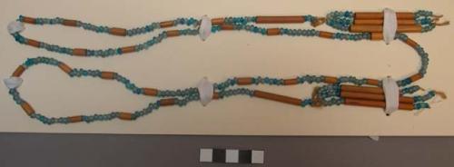 Colar Adorno de miçangas Acessar item no Acervo do museu de origemDocumentação Em “Termos de Uso”, disponíveis em (https://www.peabody.harvard.edu/node/778) explicita-se que o website é mantido pelo Peabody Museum of Archaeology and Ethnology, da Universidade de Harvard, que pode alterá-los a qualquer momento sem aviso prévio. O uso do website deve estar em concordância com: 1. O Site e grande parte do texto, imagens, gráficos, clipes de áudio e vídeo, informações e outros conteúdos do Site (coletivamente, o “Conteúdo”) são protegidos por direitos autorais, marcas registradas e outras leis. 2. O Conteúdo é disponibilizado somente para seu uso pessoal limitado, não comercial para fins educacionais ou acadêmicos, ou para outro uso justo na extensão permitida pela lei de direitos autorais dos Estados Unidos. A menos que especificado de outra forma no Site, você pode empregar as funções normais de seu navegador para baixar e imprimir uma única cópia de arquivos de Conteúdo individuais para tal uso, desde que você mantenha todos os direitos autorais e outros avisos de propriedade associados ao Conteúdo. Você deve citar o autor/artista e a fonte do Conteúdo como se fosse conteúdo de qualquer trabalho impresso, e a citação deve incluir a URL www.peabody.harvard.edu; 3. Concedem a permissão limitada acima sob os direitos autorais que possuem. Os direitos autorais e outros direitos sobre o Conteúdo também podem ser detidos por outros indivíduos ou entidades, incluindo artistas e outros detentores de direitos sobre as coleções do Museu Peabody reproduzidas no Site; 4. Usos Proibidos. É proibido copiar, exibir, publicar, distribuir, transmitir, modificar, executar ou utilizar ou explorar qualquer Conteúdo protegido no Site para qualquer propósito comercial ou com o propósito de torná-lo publicamente disponível. É proibido incluir qualquer Conteúdo protegido em um banco de dados, website ou recurso eletrônico, e de fazer qualquer outro uso do Conteúdo protegido que não seja expressamente permitido pela Seção 2; 5. Para solicitar permissão, sob direitos controlados por nós, para qualquer uso de outra forma proibido, favor entrar em contato com o Peabody Museum of Archaeology and Ethnology’s Office of Rights and ReproductionsPovo Indígena Karajá Autodenominação: Iny Iny Karaja Outros nomes para o povo: Carajás Localização: America do SulBrasilGoiás (GO)Mato Grosso (MT)Pará (PA)Tocantins (TO)Museu Peabody Museum (Cambridge, EUA) Localização: América do NorteCambridgeEstados Unidos Número de tombo: 18-12-30/F191 Número anterior: 18-12-30/F191Tipo de Acervo: EtnológicoCaracterísticas Dimensões: 34 x 8 x 0,9 cm 13 3,8 x 3 1,8 x 3,8 cm Quantidade de componentes: 1 Material/Suporte: Caniço, vidro, cordaTesauro (FUNAI) Artefatos: Adorno corporalAdorno para TroncoColar Matérias Primas: Fibra VegetalProduto de origem VegetalProduto industrializadoProveniência Coleta: América do Sul, BrasilHistórico Cedente: Anônimo Coletor:Anônimo Forma de Aquisição: : Selecione Exportar ObraAdorno de miçangas