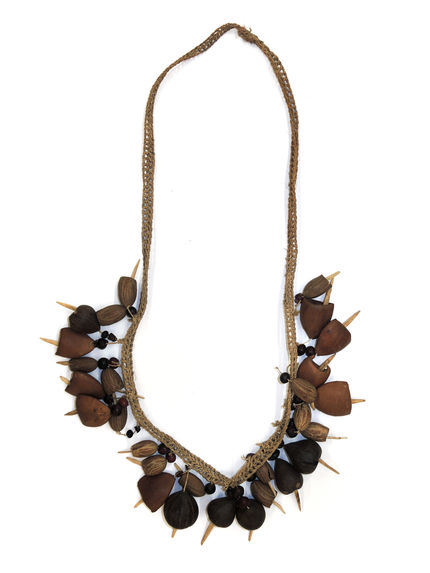 Material/Suporte: fibras vegetais, semente, caroço de plantas e ossos de dedos de macaco