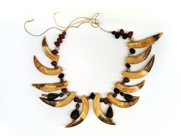 Material/Suporte: fibras vegetais, semente, caroço de plantas e dente de macaco