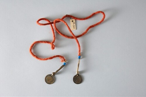 Material/Suporte: Lã, cordão de vidro, placa de prata