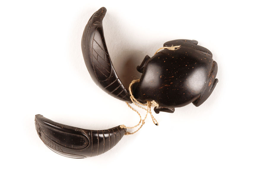 Técnicas: Fibra vegetal torcida (Astrocaryum chambira), casca cortada de coco (Astrocaryum sp.)