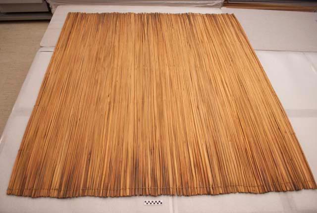 Esteira Tapete de caniço Acessar item no Acervo do museu de origemDocumentação Em “Termos de Uso”, disponíveis em (https://www.peabody.harvard.edu/node/778) explicita-se que o website é mantido pelo Peabody Museum of Archaeology and Ethnology, da Universidade de Harvard, que pode alterá-los a qualquer momento sem aviso prévio. O uso do website deve estar em concordância com: 1. O Site e grande parte do texto, imagens, gráficos, clipes de áudio e vídeo, informações e outros conteúdos do Site (coletivamente, o “Conteúdo”) são protegidos por direitos autorais, marcas registradas e outras leis. 2. O Conteúdo é disponibilizado somente para seu uso pessoal limitado, não comercial para fins educacionais ou acadêmicos, ou para outro uso justo na extensão permitida pela lei de direitos autorais dos Estados Unidos. A menos que especificado de outra forma no Site, você pode empregar as funções normais de seu navegador para baixar e imprimir uma única cópia de arquivos de Conteúdo individuais para tal uso, desde que você mantenha todos os direitos autorais e outros avisos de propriedade associados ao Conteúdo. Você deve citar o autor/artista e a fonte do Conteúdo como se fosse conteúdo de qualquer trabalho impresso, e a citação deve incluir a URL www.peabody.harvard.edu; 3. Concedem a permissão limitada acima sob os direitos autorais que possuem. Os direitos autorais e outros direitos sobre o Conteúdo também podem ser detidos por outros indivíduos ou entidades, incluindo artistas e outros detentores de direitos sobre as coleções do Museu Peabody reproduzidas no Site; 4. Usos Proibidos. É proibido copiar, exibir, publicar, distribuir, transmitir, modificar, executar ou utilizar ou explorar qualquer Conteúdo protegido no Site para qualquer propósito comercial ou com o propósito de torná-lo publicamente disponível. É proibido incluir qualquer Conteúdo protegido em um banco de dados, website ou recurso eletrônico, e de fazer qualquer outro uso do Conteúdo protegido que não seja expressamente permitido pela Seção 2; 5. Para solicitar permissão, sob direitos controlados por nós, para qualquer uso de outra forma proibido, favor entrar em contato com o Peabody Museum of Archaeology and Ethnology’s Office of Rights and ReproductionsPovo Indígena Kadiwéu Autodenominação: Guakuru Outros nomes para o povo: Guakuru Localização: America do SulBrasilMato Grosso do Sul (MS)Museu Peabody Museum (Cambridge, EUA) Localização: América do NorteCambridgeEstados Unidos Número de tombo: 89-39-30/54365 Número anterior: 89-39-30/54365Tipo de Acervo: EtnológicoCaracterísticas Dimensões: 196,3 × 178,7 × 1,7 cm 77 5,16 × 70 3,8 × 11,16 cm Quantidade de componentes: 1 Material/Suporte: Caniço, fibraTesauro (FUNAI) Artefatos: Equipamento de conforto doméstico Matérias Primas: Fibra VegetalPalhaProduto de origem VegetalProveniência Coleta: América do Sul, BrasilHistórico Cedente: Anônimo Coletor:Anônimo Forma de Aquisição: : Selecione Exportar ObraTapete de caniço