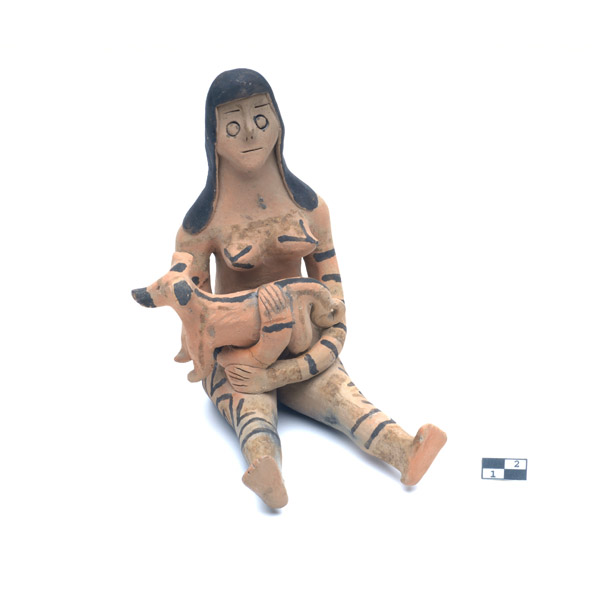 Figura feminina sentada com um cachorro (Boneca)