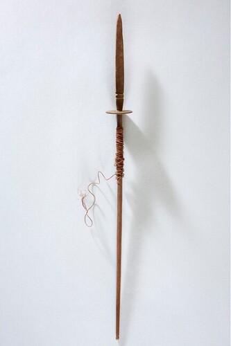 Material/Suporte: Madeira, fio (fibra de coqueiro?), metal
