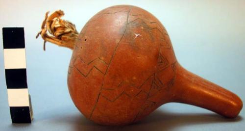Instrumento musical Chocalho de cabaça Acessar item no Acervo do museu de origemDocumentação Em “Termos de Uso”, disponíveis em (https://www.peabody.harvard.edu/node/778) explicita-se que o website é mantido pelo Peabody Museum of Archaeology and Ethnology, da Universidade de Harvard, que pode alterá-los a qualquer momento sem aviso prévio. O uso do website deve estar em concordância com: 1. O Site e grande parte do texto, imagens, gráficos, clipes de áudio e vídeo, informações e outros conteúdos do Site (coletivamente, o “Conteúdo”) são protegidos por direitos autorais, marcas registradas e outras leis. 2. O Conteúdo é disponibilizado somente para seu uso pessoal limitado, não comercial para fins educacionais ou acadêmicos, ou para outro uso justo na extensão permitida pela lei de direitos autorais dos Estados Unidos. A menos que especificado de outra forma no Site, você pode empregar as funções normais de seu navegador para baixar e imprimir uma única cópia de arquivos de Conteúdo individuais para tal uso, desde que você mantenha todos os direitos autorais e outros avisos de propriedade associados ao Conteúdo. Você deve citar o autor/artista e a fonte do Conteúdo como se fosse conteúdo de qualquer trabalho impresso, e a citação deve incluir a URL www.peabody.harvard.edu; 3. Concedem a permissão limitada acima sob os direitos autorais que possuem. Os direitos autorais e outros direitos sobre o Conteúdo também podem ser detidos por outros indivíduos ou entidades, incluindo artistas e outros detentores de direitos sobre as coleções do Museu Peabody reproduzidas no Site; 4. Usos Proibidos. É proibido copiar, exibir, publicar, distribuir, transmitir, modificar, executar ou utilizar ou explorar qualquer Conteúdo protegido no Site para qualquer propósito comercial ou com o propósito de torná-lo publicamente disponível. É proibido incluir qualquer Conteúdo protegido em um banco de dados, website ou recurso eletrônico, e de fazer qualquer outro uso do Conteúdo protegido que não seja expressamente permitido pela Seção 2; 5. Para solicitar permissão, sob direitos controlados por nós, para qualquer uso de outra forma proibido, favor entrar em contato com o Peabody Museum of Archaeology and Ethnology’s Office of Rights and ReproductionsPovo Indígena Kadiwéu Autodenominação: Guakuru Outros nomes para o povo: Guakuru Localização: America do SulBrasilMato Grosso do Sul (MS)Museu Peabody Museum (Cambridge, EUA) Localização: América do NorteCambridgeEstados Unidos Número de tombo: 89-39-30/54308 Número anterior: 89-39-30/54308Tipo de Acervo: EtnológicoCaracterísticas Dimensões: 11 x 6,1 x 6 cm 4 5,16 x 2 3,8 x 2 3,8 cm Quantidade de componentes: 1 Material/Suporte: Cabaça, fibraTesauro (FUNAI) Artefatos: ChocalhoEquipamento musicalInstrumento de percussão Matérias Primas: CabaçaFibra VegetalProduto de origem VegetalProveniência Coleta: América do Sul, BrasilHistórico Cedente: Anônimo Coletor:Anônimo Forma de Aquisição: : Selecione Exportar ObraChocalho de cabaça