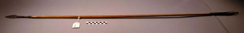 Lança Flechas com pontas de ferro Acessar item no Acervo do museu de origemDocumentação Em “Termos de Uso”, disponíveis em (https://www.peabody.harvard.edu/node/778) explicita-se que o website é mantido pelo Peabody Museum of Archaeology and Ethnology, da Universidade de Harvard, que pode alterá-los a qualquer momento sem aviso prévio. O uso do website deve estar em concordância com: 1. O Site e grande parte do texto, imagens, gráficos, clipes de áudio e vídeo, informações e outros conteúdos do Site (coletivamente, o “Conteúdo”) são protegidos por direitos autorais, marcas registradas e outras leis. 2. O Conteúdo é disponibilizado somente para seu uso pessoal limitado, não comercial para fins educacionais ou acadêmicos, ou para outro uso justo na extensão permitida pela lei de direitos autorais dos Estados Unidos. A menos que especificado de outra forma no Site, você pode empregar as funções normais de seu navegador para baixar e imprimir uma única cópia de arquivos de Conteúdo individuais para tal uso, desde que você mantenha todos os direitos autorais e outros avisos de propriedade associados ao Conteúdo. Você deve citar o autor/artista e a fonte do Conteúdo como se fosse conteúdo de qualquer trabalho impresso, e a citação deve incluir a URL www.peabody.harvard.edu; 3. Concedem a permissão limitada acima sob os direitos autorais que possuem. Os direitos autorais e outros direitos sobre o Conteúdo também podem ser detidos por outros indivíduos ou entidades, incluindo artistas e outros detentores de direitos sobre as coleções do Museu Peabody reproduzidas no Site; 4. Usos Proibidos. É proibido copiar, exibir, publicar, distribuir, transmitir, modificar, executar ou utilizar ou explorar qualquer Conteúdo protegido no Site para qualquer propósito comercial ou com o propósito de torná-lo publicamente disponível. É proibido incluir qualquer Conteúdo protegido em um banco de dados, website ou recurso eletrônico, e de fazer qualquer outro uso do Conteúdo protegido que não seja expressamente permitido pela Seção 2; 5. Para solicitar permissão, sob direitos controlados por nós, para qualquer uso de outra forma proibido, favor entrar em contato com o Peabody Museum of Archaeology and Ethnology’s Office of Rights and ReproductionsPovo Indígena Arawak Outros nomes para o povo: ArawakiMuseu Peabody Museum (Cambridge, EUA) Localização: América do NorteCambridgeEstados Unidos Número de tombo: 78-5-30/16796 Número anterior: 78-5-30/16796Tipo de Acervo: EtnológicoCaracterísticas Dimensões: 133,5 x 2,6 x 1,5 cm 52 9,16 x 1 x 9,16 cm Quantidade de componentes: 1 Material/Suporte: Madeira, metal, caniço, fibra, penaTesauro (FUNAI) Artefatos: Arma de arremessoEquipamento para caça, pesca, ataque/defesaLança Matérias Primas: Fibra VegetalMadeiraMetalPenaProduto de origem AnimalProduto de origem MineralProduto de origem VegetalProveniência Coleta: América do Sul, BrasilHistórico Cedente: Museu de Zoologia Comparada Coletor:Prof Louis Agassiz Forma de Aquisição: : Selecione Exportar ObraFlechas com pontas de ferro