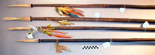 Lança Lanças Acessar item no Acervo do museu de origemDocumentação Em “Termos de Uso”, disponíveis em (https://www.peabody.harvard.edu/node/778) explicita-se que o website é mantido pelo Peabody Museum of Archaeology and Ethnology, da Universidade de Harvard, que pode alterá-los a qualquer momento sem aviso prévio. O uso do website deve estar em concordância com: 1. O Site e grande parte do texto, imagens, gráficos, clipes de áudio e vídeo, informações e outros conteúdos do Site (coletivamente, o “Conteúdo”) são protegidos por direitos autorais, marcas registradas e outras leis. 2. O Conteúdo é disponibilizado somente para seu uso pessoal limitado, não comercial para fins educacionais ou acadêmicos, ou para outro uso justo na extensão permitida pela lei de direitos autorais dos Estados Unidos. A menos que especificado de outra forma no Site, você pode empregar as funções normais de seu navegador para baixar e imprimir uma única cópia de arquivos de Conteúdo individuais para tal uso, desde que você mantenha todos os direitos autorais e outros avisos de propriedade associados ao Conteúdo. Você deve citar o autor/artista e a fonte do Conteúdo como se fosse conteúdo de qualquer trabalho impresso, e a citação deve incluir a URL www.peabody.harvard.edu; 3. Concedem a permissão limitada acima sob os direitos autorais que possuem. Os direitos autorais e outros direitos sobre o Conteúdo também podem ser detidos por outros indivíduos ou entidades, incluindo artistas e outros detentores de direitos sobre as coleções do Museu Peabody reproduzidas no Site; 4. Usos Proibidos. É proibido copiar, exibir, publicar, distribuir, transmitir, modificar, executar ou utilizar ou explorar qualquer Conteúdo protegido no Site para qualquer propósito comercial ou com o propósito de torná-lo publicamente disponível. É proibido incluir qualquer Conteúdo protegido em um banco de dados, website ou recurso eletrônico, e de fazer qualquer outro uso do Conteúdo protegido que não seja expressamente permitido pela Seção 2; 5. Para solicitar permissão, sob direitos controlados por nós, para qualquer uso de outra forma proibido, favor entrar em contato com o Peabody Museum of Archaeology and Ethnology’s Office of Rights and ReproductionsPovo Indígena Karajá Autodenominação: Iny Iny Karaja Outros nomes para o povo: Carajás Localização: America do SulBrasilGoiás (GO)Mato Grosso (MT)Pará (PA)Tocantins (TO)Museu Peabody Museum (Cambridge, EUA) Localização: América do NorteCambridgeEstados Unidos Número de tombo: 18-12-30/F157 Número anterior: 18-12-30/F157Tipo de Acervo: EtnológicoCaracterísticas Dimensões: 227,8 x 13,5 x 3,2 cm 89 11,16 x 5 5,16 x 1 1,4 cm Quantidade de componentes: 4 Material/Suporte: Madeira, osso, fibra, penaTesauro (FUNAI) Artefatos: Arma de arremessoEquipamento para caça, pesca, ataque/defesaLança Matérias Primas: Fibra VegetalMadeiraOssoPenaProduto de origem AnimalProduto de origem VegetalProveniência Coleta: América do Sul, BrasilHistórico Cedente: Anônimo Coletor:Anônimo Forma de Aquisição: : Selecione Exportar ObraLanças
